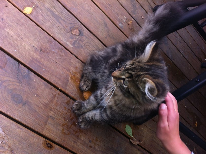 Kosete kattunge som har slått seg til hos oss. Vi er allergiske og kan ikke ha den inne.