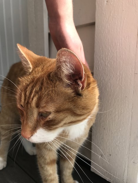 Oransje hunnkatt funnet i hyttefeltet ovenfor Knatvoldstranda campingplass. Veldig selskapssyk og vennlig. Sulten og virker tynn. Flått. Ingen merker i øret.