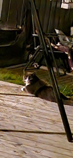 En veldig sky katt har dukket opp hjemme hos oss i sommer. Får ikke tak i den. Vanskelig å få tatt bilde da vi ikke kommer oss nær den. Har etterlyst eier uten hell. Bor et stykke unna hus, å de som bor i nærheten har vi kontroll på katter. Den virker ikke skadd, utmagret eller syk av det vi klarer å se. Vi har hatt mat ut siden i sommer å mistenker det er derfor den oppholder seg her.