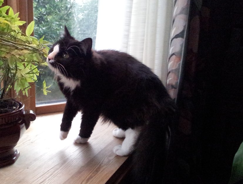 Katten dukket bare opp og har hengt rundt huset i en snau uke. Tror det er en hannkatt men den er langhåret så det er ikke så lett å se. Ganske tam, men litt nervøs.