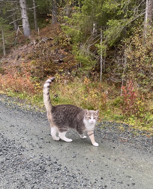 På tur opp til Rønningen Gård, ikke så langt fra Smistad parkering møter jeg en veldig kontaktsøkende katt. Den mjauer høyt og sårt. Usikkert av hvilken grunn. Den følger ikke etter meg når jeg går videre. Ser ut som den går inn i skogen. Jeg lurer på om den er savnet.