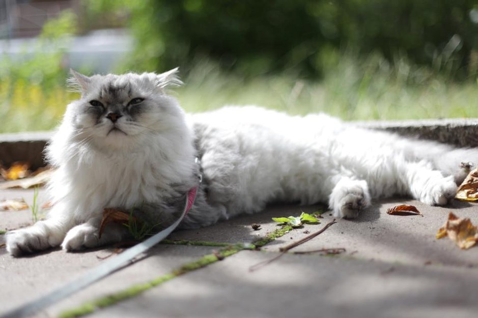 - Inne katt, mais liker å go ut med sele og bånd i hagen