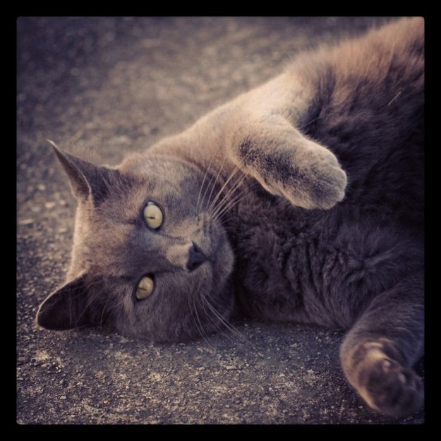 Han er litt lubben/kraftig, mørkegrå over hele seg. Fylte 4 år nå i våres.