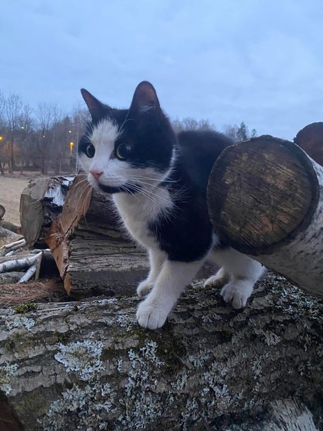 Cyra er ikke så stor jente med sort og hvit pelse. Hun er ikke redd av både folk og andre dyr. Hun «snakker» mye og liker hilse på fremmende folk.