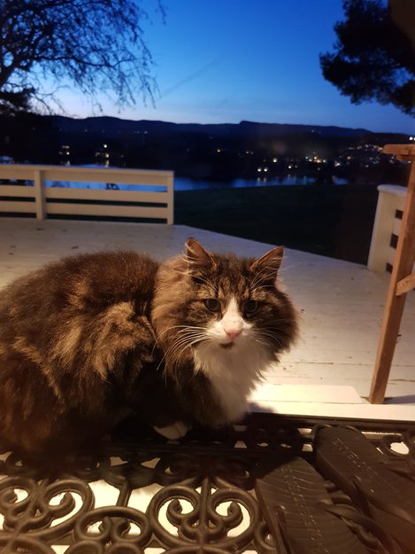 Hvitt parti rundt nese og bryst, ender i en spiss mellom øynene. Rosa nese. Halve høyre underlepper er mørk, resten hvit. Hvite poter.