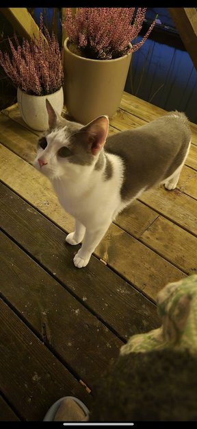 Hatt denne pusen mjauende hos oss i hele dag. Virkee veldig kald og vil inn i varmen. Problemet er at vi har 3 katter som ikke er aå begeistret for dette.