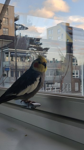 Grå, hvit, gul, rød hannfugl savnet i Lillestrøm