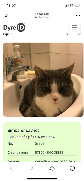 Grå og hvit hannkatt var savnet i Oslo