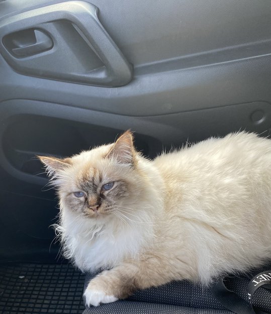 Han er ensfarget men har en litt mørkere brunlig farge på halen også i ansiktet . Han er rase katt og er skiller seg ganske ut. Vi har hatt gps tag på han for vi ofte har han i bånd , men tok dette av bare dager før slik han skulle få litt «fred» og være mer komfortabel i tilfelle båndet klødde .