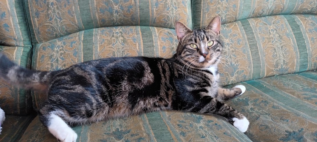 Jeg ville nok omtalt han som en normal- stor hannkatt. Smidig kropp og svært atletisk. Han er verken sjenert eller sosial i møte med fremmede. Føler han seg trygg, opplever jeg ham som en katt som benytter enhver anledning til å slenge seg på rygg, og blotte magen.