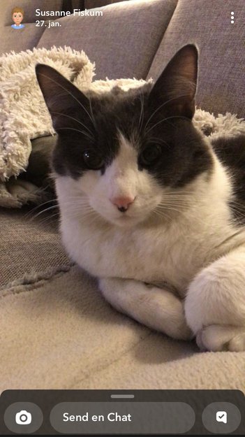 Arr på nesen, dårlig syn venstre øye, hvit flekk i det sorte på ryggen, sky