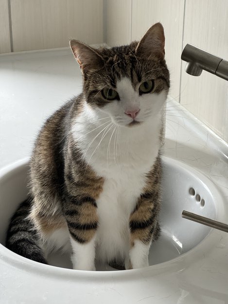 Veldig kosete og kontaktsøkende hunnkatt. Litt rund, men ikke veldig stor. Hun er ID- chippet, men uten halsbånd. Hun lyder til navnet sitt (Yumi).
