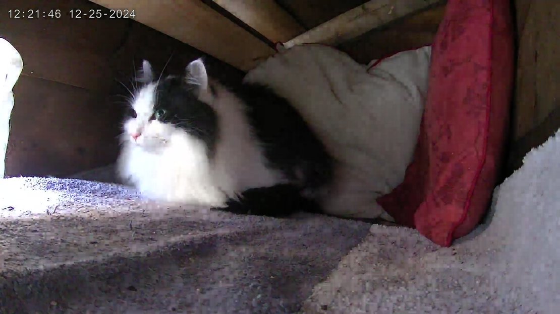 Jeg har overvåkningskamera i leiligheten og pus er sist sett 22:51 på torsdag kveld 27.12.24 i stua.