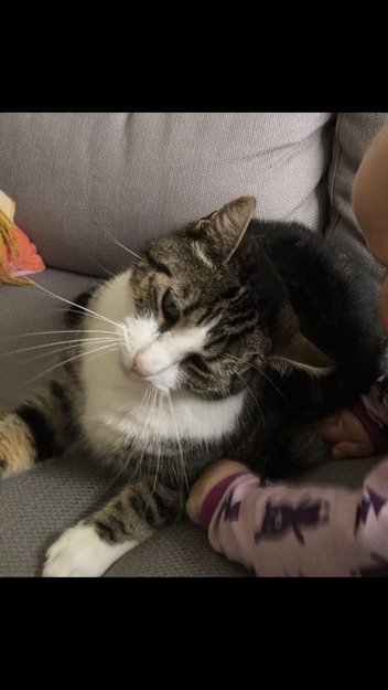 Heter Milly, 11 år, stor hannkatt. Redd for barn, kjælen og snill. Bor ca 1km fra stedet den løp bort fra. Har ikke vært i området før og kan ha gjemt seg i ly. Kastert, ikke chip