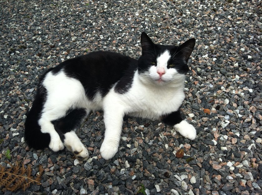 Gikk å mjauet rundt huset i noen dager og var tydelig sulten og sliten. Bor nå hos meg.