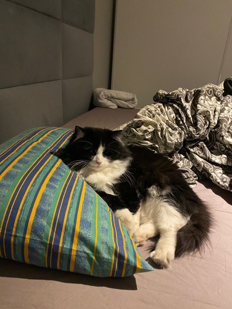 Fezi satt plutselig i hagen og spiste tørrfôr som jeg hadde lagt ut.