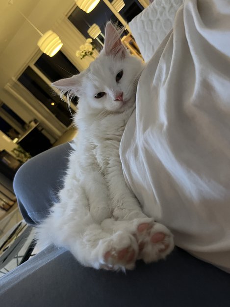 Samboer slapp ut Morris på kvelden 01.03 før været ble dårlig. Prøvde å rope han inn før vi la oss. Siden det har det vært ordentlig uvær, og katten er ingen plass og finne. Vi har lett og lett i hele nærområdet og er veldig bekymret. Han er liten og spe av natur og er livredd for at han har det vondt.
