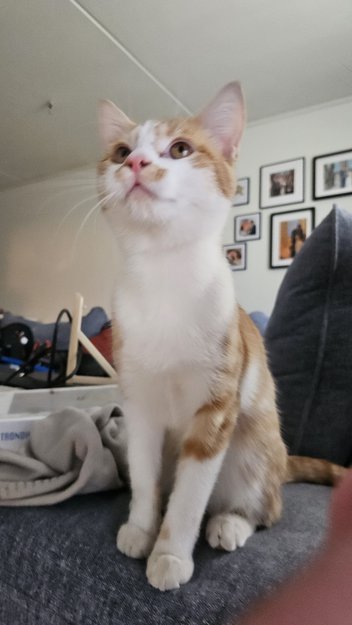 Katten ble observert av andre i nærheten av City Lade og de tok den med til vetrinær som kunne fortelle at den er ca. 6 mnd gammel og ikke chippet.