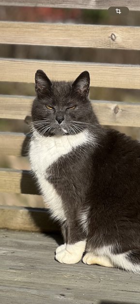 Pusen kom til oss i vinter . Usikker på dato. Vi har et uthus med varme - mat og vann til vår katt. 🐈⬛ Jeg oppdaget den en dag jeg skulle inn med mat . Den var svært sky- hveste og prøvde å bite. Veldig redd stakkar. Etterhvert som våren nå har kommet , så tør den å komme ut på dagtid . Jeg får nå kose med den og den er blitt svært annerledes i gemyttet. Jeg har etterlyst eier i flere runde på sosiale medier uten hell. Nå når jeg endelig får nærme meg uten biting , så fikk jeg i dag lånt chip leser. Den er ikke chippet. Har nå vært i kontakt med dyrebeskyttelsen. Har utrolig lyst til at den kan få være her som den har funnet trygghet, men det beste er jo å få komme tilbake til familien sin ❤️ Om den har en ❣️ Noen som kjenner hen ? Eller savner hen? 🩶 Nydelig pus som viser stor kjærlighet når den er trygg🩶