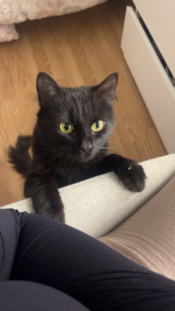 Katten ble nysgjerrig og hoppet ut i bakgården fra første etasje. Hun er veldig redd og sensitiv til lyder så hun må lokkes frem (ikke gå mot henne), da hun løper. Hvis du får til å bære henne, ring med en gang! Si gjerne ifra om du har sett henne.