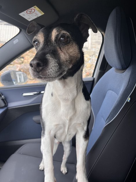 Liten korthåret hannhund. Terrier kanskje?