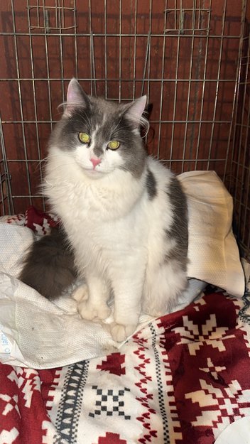 Grå og hvit hannkatt ble funnet i Gjerstad