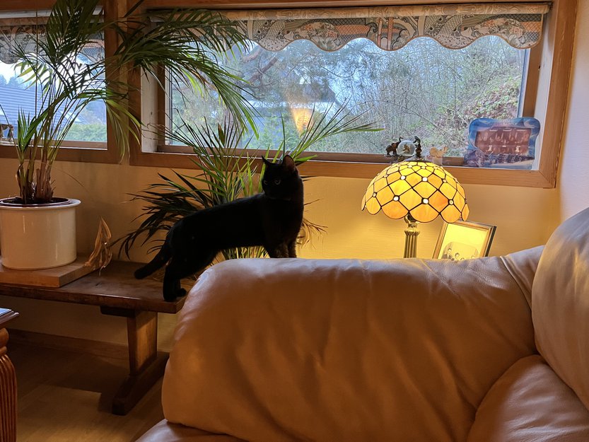 Tok seg ut av åpent vindu natt til fredag 18. april. Er en litt sky katt. Ikke kjent i området.