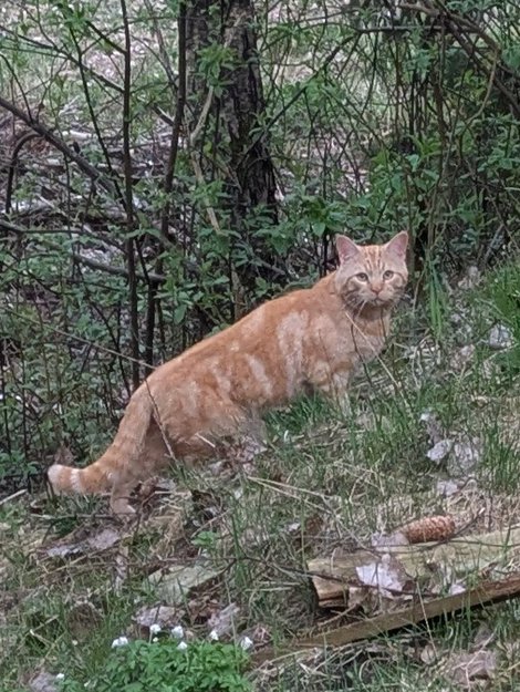 Møtte plutselig en katt ved huset vårt som vi aldri har sett før. Det bor ingen andre katter i nærområdet, og den var veldig kosete og tam. Antar at den har vandret vekk fra hjemmet sitt. Den var innom hagen vår før den småløp videre.