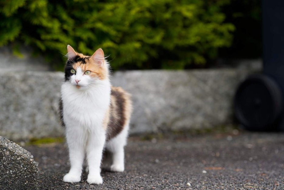 Svart, hvit, oransje hunnkatt savnet i Alver
