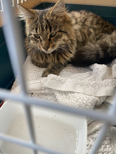 Ung voksen katt funnet. Sort og brun spraglete- langhåret