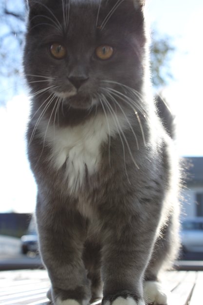 Ble funnet lørdag morgen utenfor trappa vår. Tror det er en hannkatt på ca 5 mnd. Den er veldig kjælen og godt lynne. Den har grå lodden pels med hvite labber, og hvitt bryst. Den savner nok eieren sin veldig.