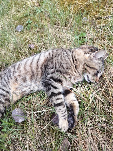 Fant dessverre en påkjørt katt i dag. Trolig nylig skjedd. Ble lagt til siden og ringt politiet.