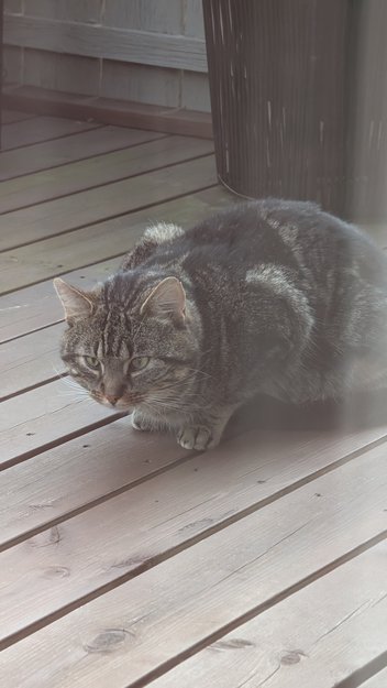 Den virker å være kosete, men flykter om man prøver å fange den. Den markerer seg rund husene og min egen katt er redd denne "villkatten"