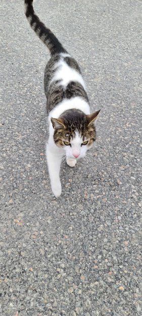 Kjælen hannkatt( kastrert tror jeg) som har holdt seg rundt Vollebekk forsøksgård de siste dagene. Har mange og store flott i pelsen, antar den ikke har vært hjemme på en stund. Men trolig en huskatt siden den er veldig oppsøkende. Ser ellers ut til å være frisk.