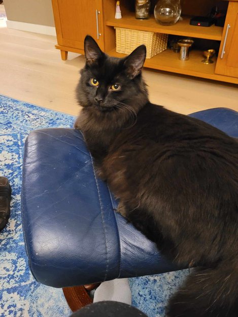 Veldig tykk hale, store ører, gule øyne. Sky innekatt, redd for mennesker og dyr.