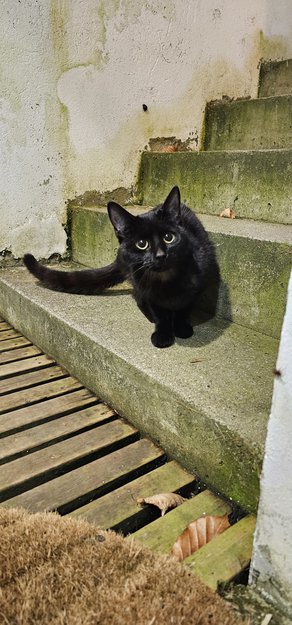 All black (ca. 1 yr old female) cat has approached me today on my way from Kastellet trikk stop on Cappelens vei. She was very friendly and cuddly and followed me all the way home. She was even trying to get inside, but I couldn't allow it, because we have a cat of our own and she's not very fond of company.