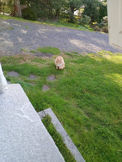 Katten kommer utsultet.Vet ikke om han kan bo i nærheten.men den er sky.Jeg la ut bilde igår av katten.Fikk tatt bilde nå.så legger ut oppgradert bilde .