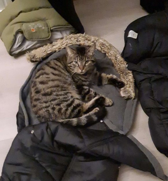Arr ved øyet over nesen, svart under potene og tuppen på halen er svart. Han er kastrert.