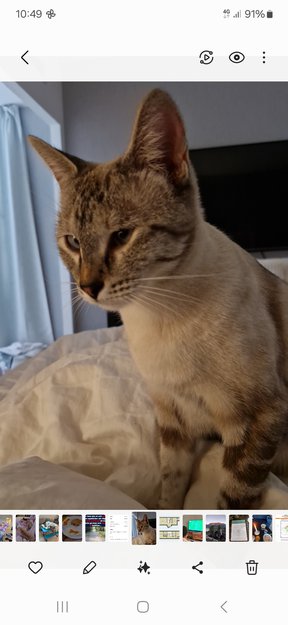 Yuki er en vakker katt men blå øyne og hun sjegler . Hun har noen tiger striper på bena ellers ser hun ut som hun er blanding av Ragdoll/hellig Birma og en annen rase . Hun er liten katt ,kunn 5 kg.
