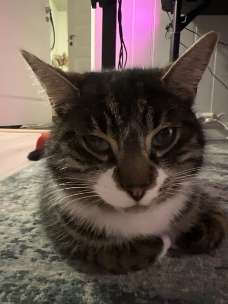 Jeg og min samboer hørte mjauing utenfor hos oss i flere dager. Siste dagen altså natt til mandag sto stakkars pusen å mjauet utenfor til oss hele natten, vi valgte derfor å slippe pusen inn. Hun så fin ut, hadd 2 flått som vi fikk fjernet(hatt katt før). Så litt spinkel ut. Har vært hos veterinær for å sjekke om hun hadde noen chip. Det hadde hun ikke. Så inntil videre tar vi vare på henne. Hun er både ute og inne. Dette er ei jente på mellom 1-2 år. Veldig rolig av seg.
