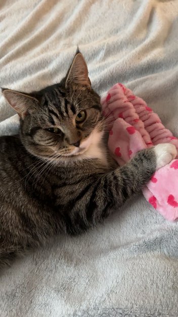 Litt større katt, litt kortere bein en vanlig. Veldig snill å imøtekommende katt