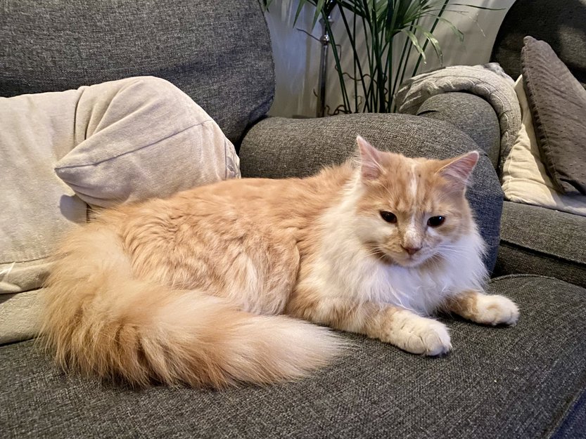 Orange/beige og hvit hannkatt var savnet i Bærum