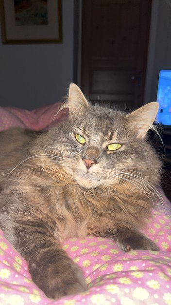Han er ein han katt som er kastrert, han heite lurven og like seg best med dei han kjenne
