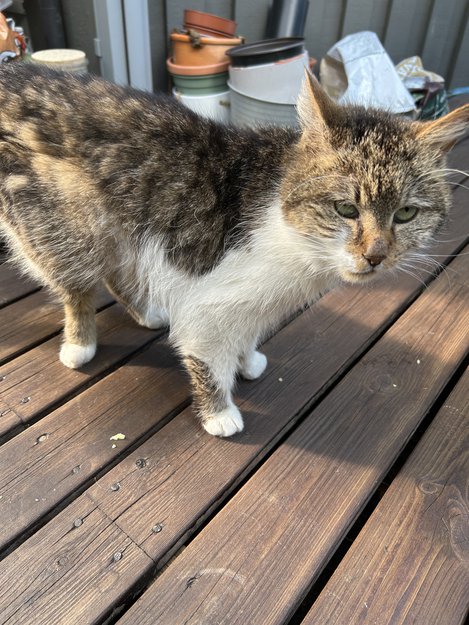 Brun/grå/hvit hunnkatt ble funnet i Bergen