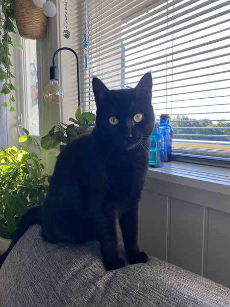 Innekatt har falt/hoppet fra veranda i 4.etasje. Har sett henne flere ganger og vet hun ikke er skadet, men har ikke klart og lokke henne til oss