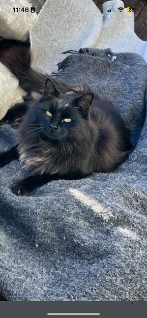 Han er svart langhåret, brunskjær i sollys. Har et hjerte tatovert i øret, lyder til navnet sitt og «skal du ha mat». Da bruker han å komme.
