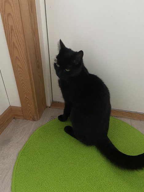 Cindy har vært borte siden onsdag 26 april hun har en liten hvit flekk påbrystet ellers helt sort. Hun pleier å holde seg på fjellom, er det noen som har sett henne?