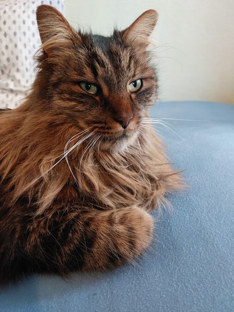 Han kom ikke inn etter fredag 16.5. ca. kl 05. og har vært borte hele helgen. Han holder seg borte når vi har besøk, men kommer inn igjen om kvelden for å spise for å gå ut igjen. Synes at det er litt rart når han ikke har vært hjemme på fire døgn. Det ligner ikke han, for han er for glad i tørrfôret sitt. Han jakter mye i vår-, sommer- og høsthalvåret siden han er utekatt.