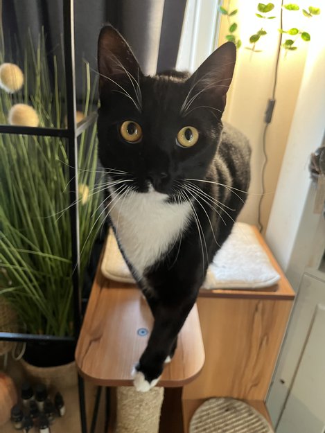 Vidar klarte å smette ut på verandaen og snike seg ut i natten. Han er halvannet år, og har ikke vært ute alene før, han er heller dessverre ikke chippet, men er kastrert. Vidar er på besøk her, og er ikke så kjent i området. Vidar er veldig menneske-sky og er en skikkelig redd katt. Han er redd for høye lyder, biler, mennesker og dyr. Han har blitt tøffere når jeg har gått sammen med han i skogen, men selv med far eller mor tilstede så er han veldig sky ovenfor andre mennesker, og gjemmer seg og trekker seg heller vekk og tilbake. Vidar er en flott tuxedo-katt, han lyder navnet sitt men er generelt veldig stille av seg. Pelsdrakten hans er sort på rygg og sider, med en hvit underside. Poter er sorte, utenom tuppene på alle fire poter som er hvite. Vidar har et lett gjenkjennelig «arr» under snuta som er hvit pels, lignende på et arr. Han har gul-grønne øyne med sorte pupiller. Han er veldig snill, men blir veldig fort redd og kan klore og i verste fall bite for å komme seg løs, spesielt om han er redd, noe han mest sannsynlig er dessverre! Jeg elsker Vidar, og savner han masse, håper noen kan hjelpe!