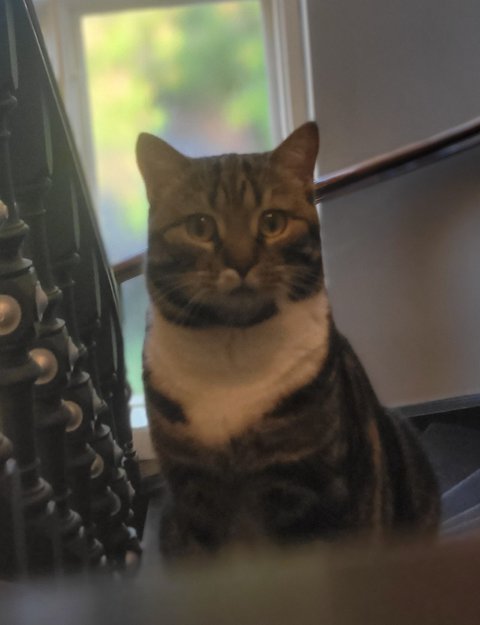 The one-year-old cat escaped from the apartment on May 20, 2025, around 5 p.m. He is an indoor cat and is not used to being outside. He may be frightened by people, noise, and weather conditions.